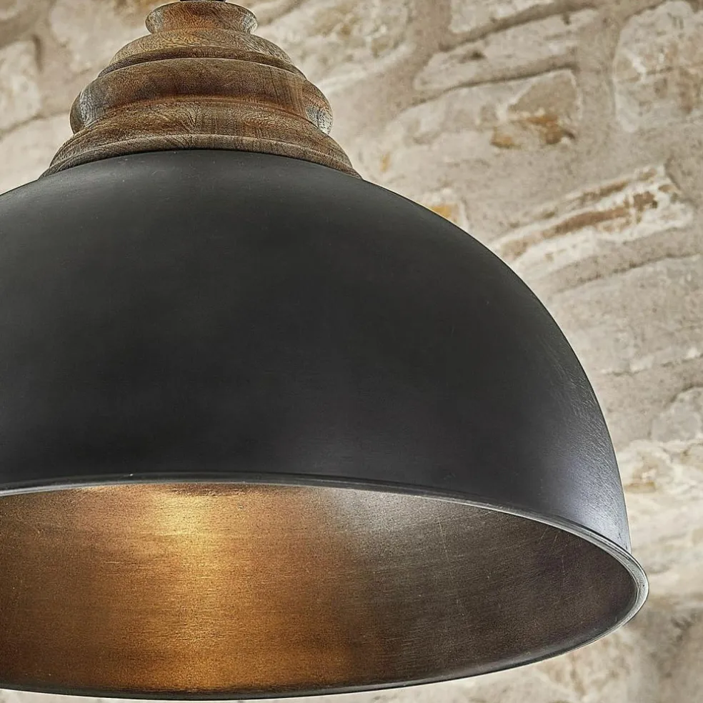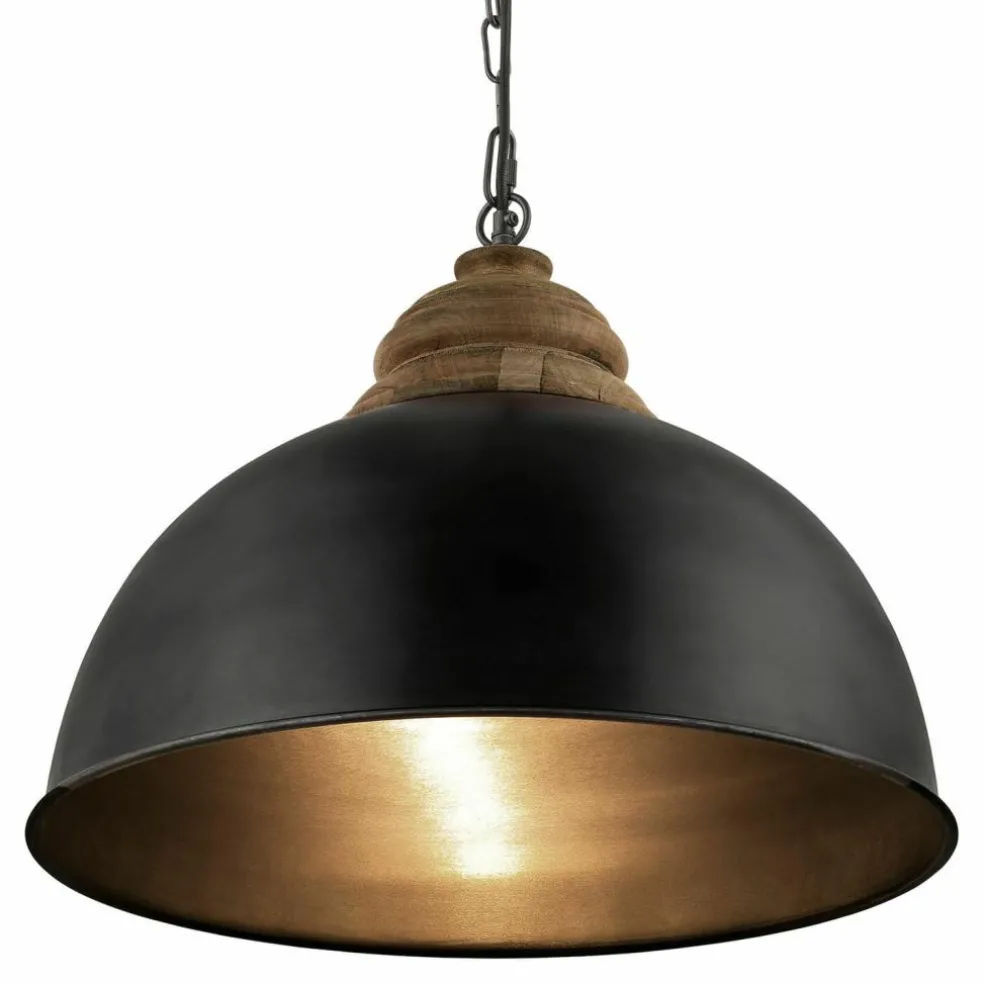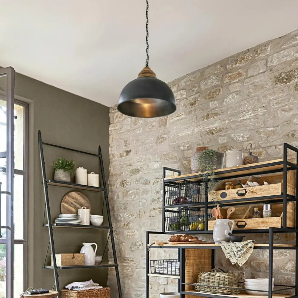 La suspension représentée est une véritable pièce de déclaration pour les amateurs de style industriel. Le large abat-jour en fer noir offre une lumière agréable et uniforme, parfaite au-dessus d’une table à manger ou dans un appartement de type loft. La suspension en bois de manguier naturel est particulièrement raffinée et offre un contraste rustique avec le métal froid. La suspension à chaîne confère à la lampe un caractère industriel supplémentaire, qui la rend non seulement fonctionnelle mais aussi décorative. Avec son style intemporel, elle s’intègre harmonieusement dans les intérieurs modernes et rustiques.