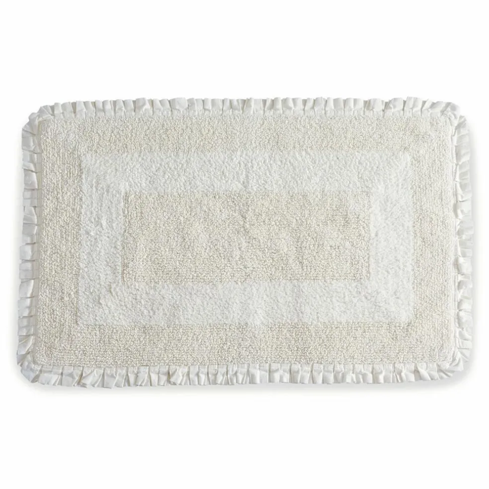 Le splendide tapis de bain en pur coton enchante avec une bordure décorative en volants de coton. La couleur noble embellit chaque salle de bains et donne encore plus d’élégance. Il est en outre merveilleusement doux sous vos pieds. Le coton pur absorbe très bien l’humidité et sèche rapidement. Un accessoire romantique qui met en valeur chaque salle de bains.
