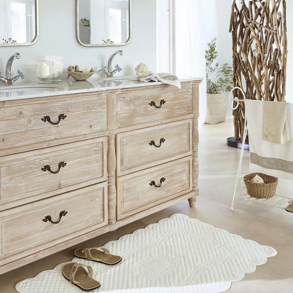 Ce joli tapis de bain est en tissu légèrement matelassé. Son style délicat et naturel mettra en valeur votre salle de bains. Les motifs classiques attireront le regard. Le matelassage apporte un grand confort. Agrémentez votre salle de bain d’une touche particulière !