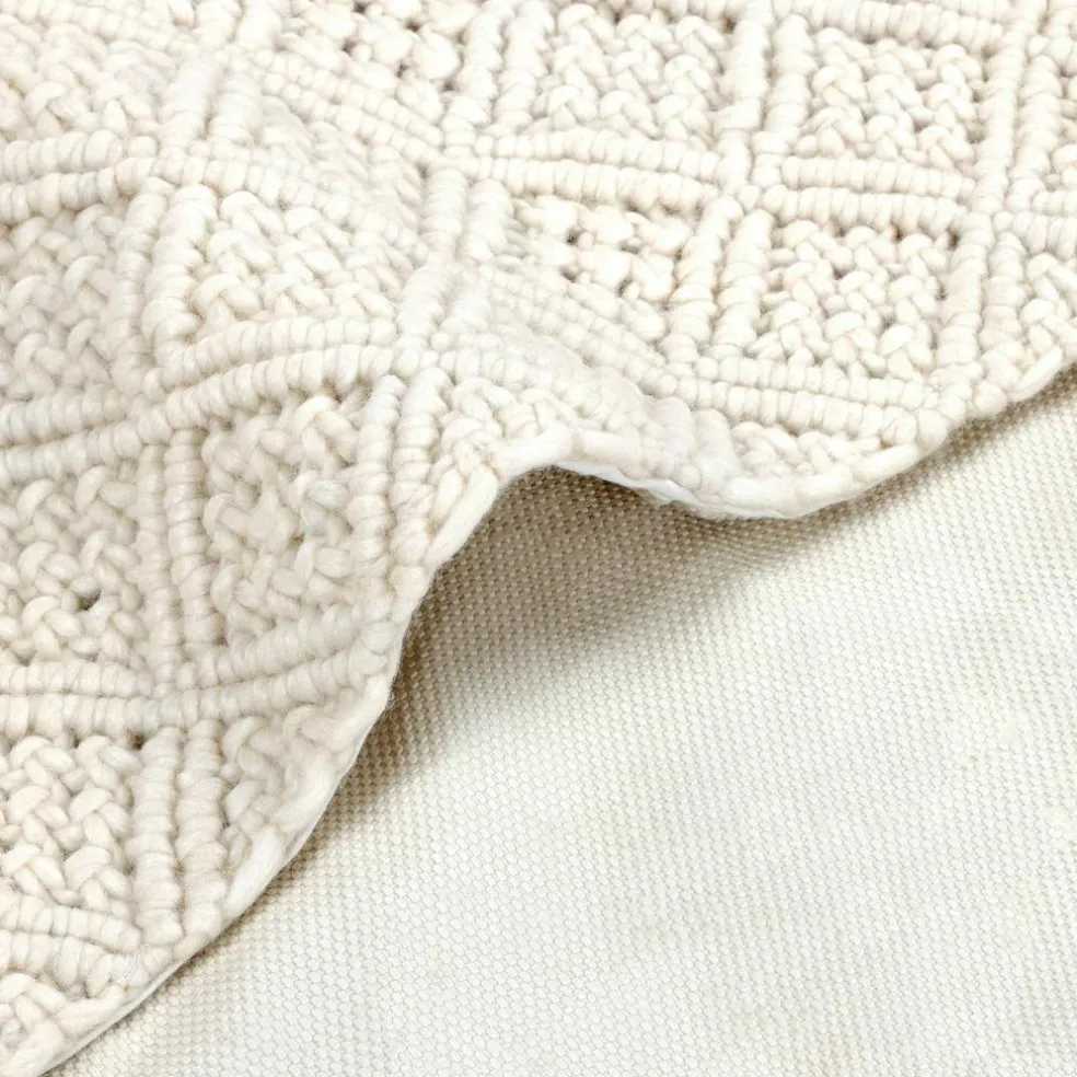 Cet élégant tapis constitue une pièce de choix au ravissant motif macramé. Il est noué à la main et son dessus est composé de pure laine douce, que vos pieds ne manqueront pas d’apprécier. Son dessous est confectionné dans un mélange de coton et de latex, pour assurer son adhérence au sol. Le charme de ce tapis aux longues franges et au somptueux motif se marie parfaitement avec un intérieur bohème chic ou encore oriental. Ce tapis raffiné est doux et confortable sous les pieds et il rendra votre votre chambre à coucher ou votre salon encore plus cosy.