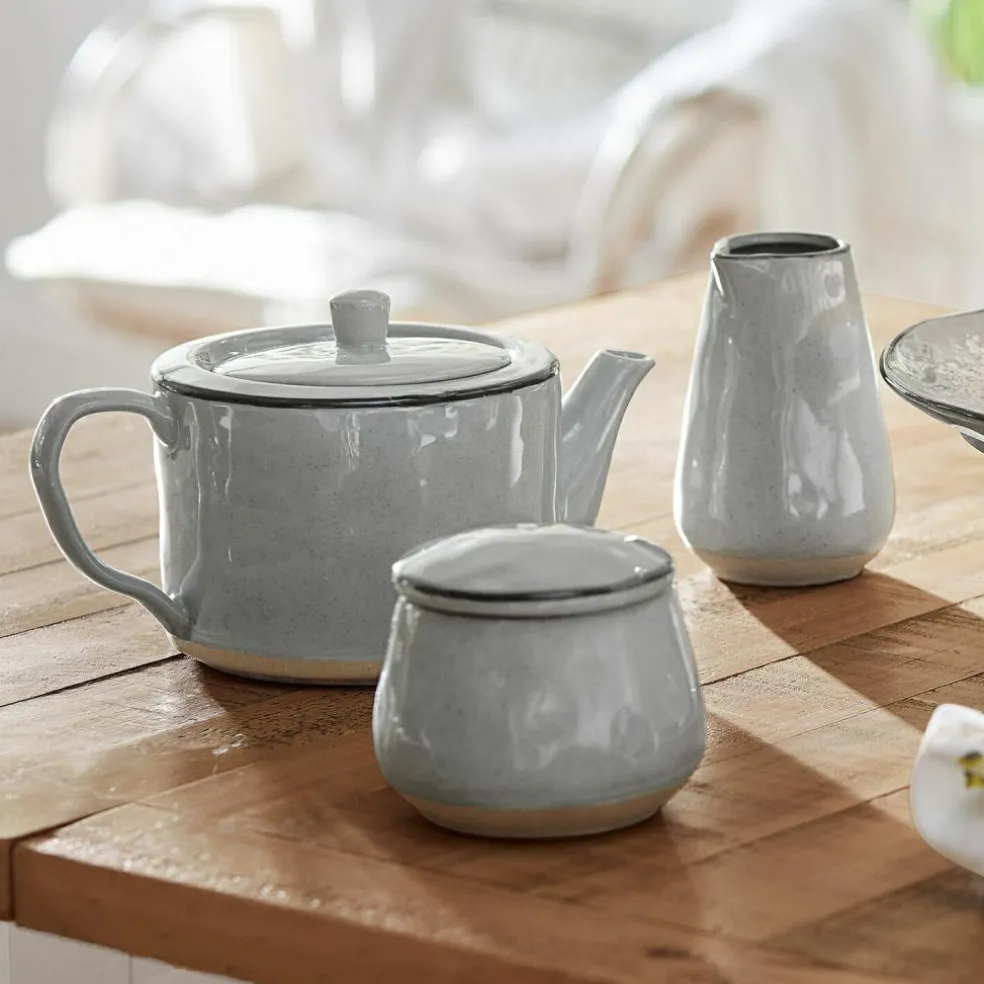 Une pièce de choix intemporelle invite à faire une pause à chaque tasse de thé. La jolie théière est fabriquée dans du grès qui dégage un magnifique charme artisanal. Elle présente volontairement quelques irrégularités pour conserver son authentique caractère légèrement méditerranéen. Avec, vous savourerez votre thé au petit-déjeuner, vous mangerez vos petits biscuits et vos gâteaux avec une boisson chaude, ou vous dégusterez dans le calme une infusion le soir. Naturellement, vous pouvez remplir la théière de ce que vous voulez, que ce soit chez vous ou à l’extérieur. Une autre possibilité est de la poser simplement sur une belle étagère pour apprécier sa magnifique esthétique et sa superbe forme. Séduisante et élégante, elle peut vous accompagner partout et en toute saison. Elle est parfaite avec le service 30 pièces (16875) ainsi qu’avec le lot sucrier et petit pot à lait (19234).