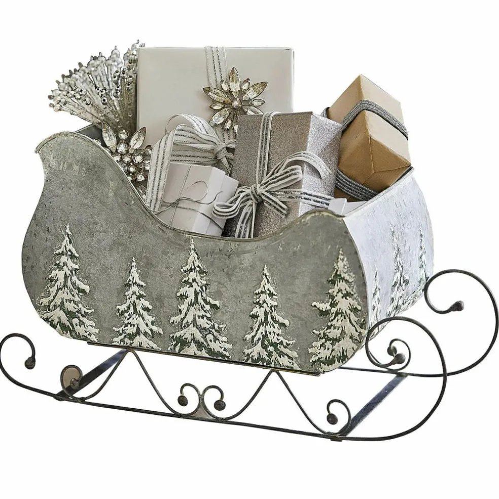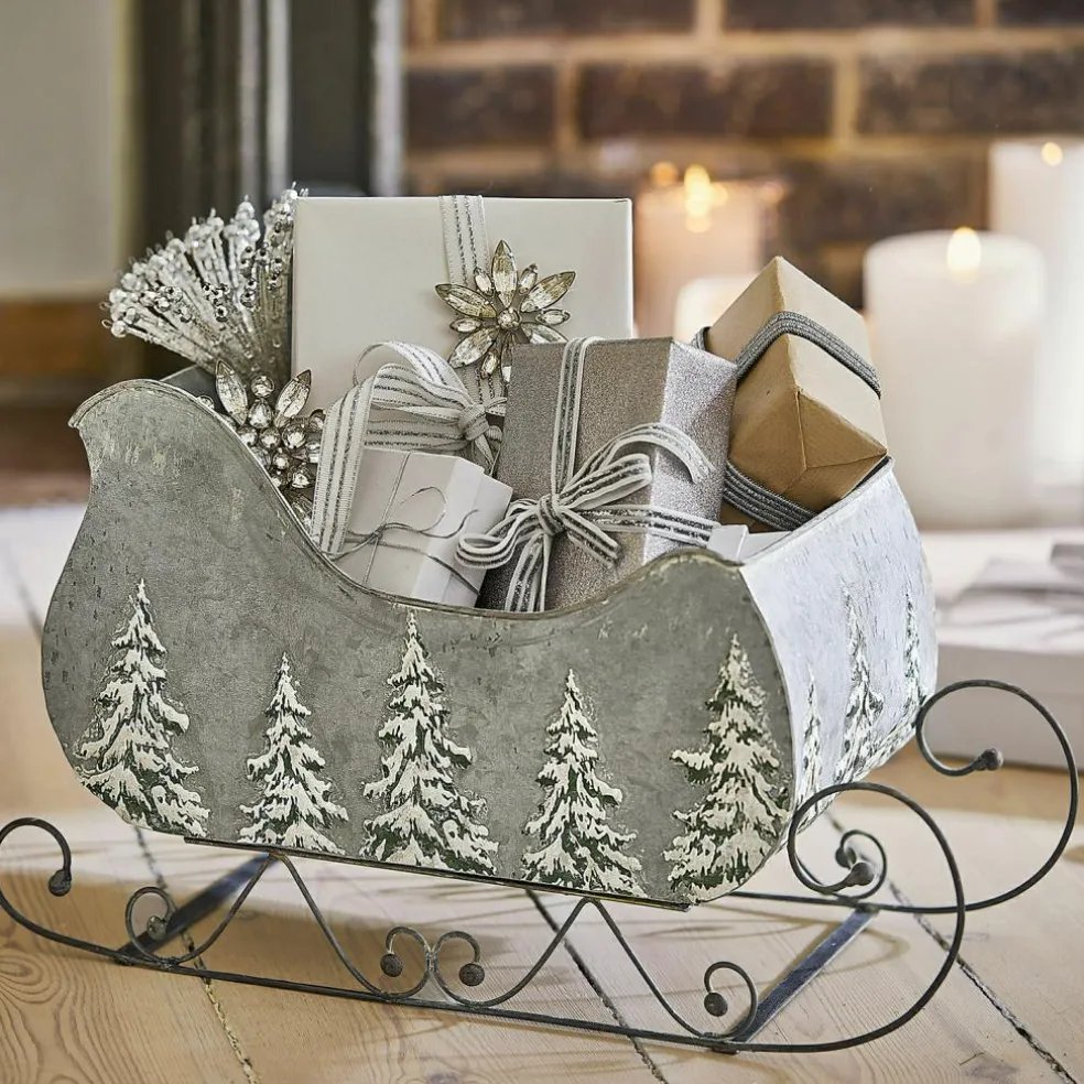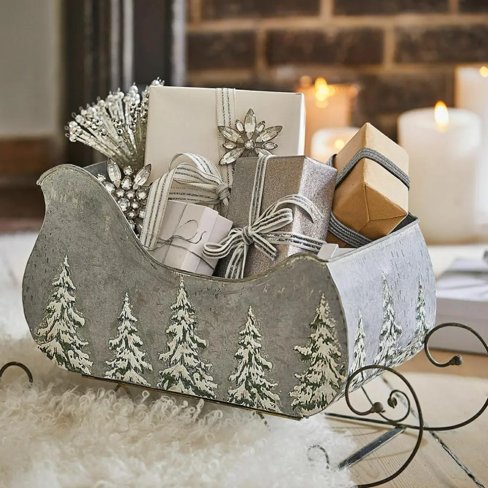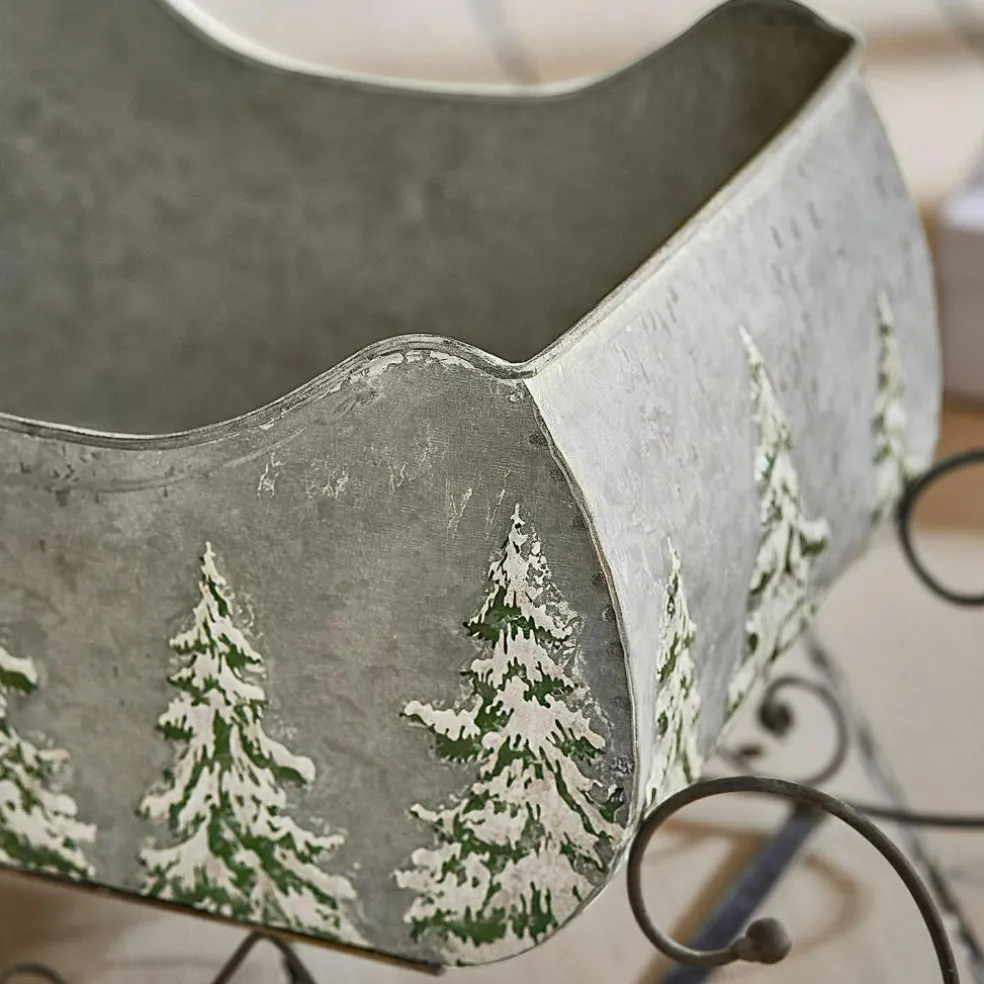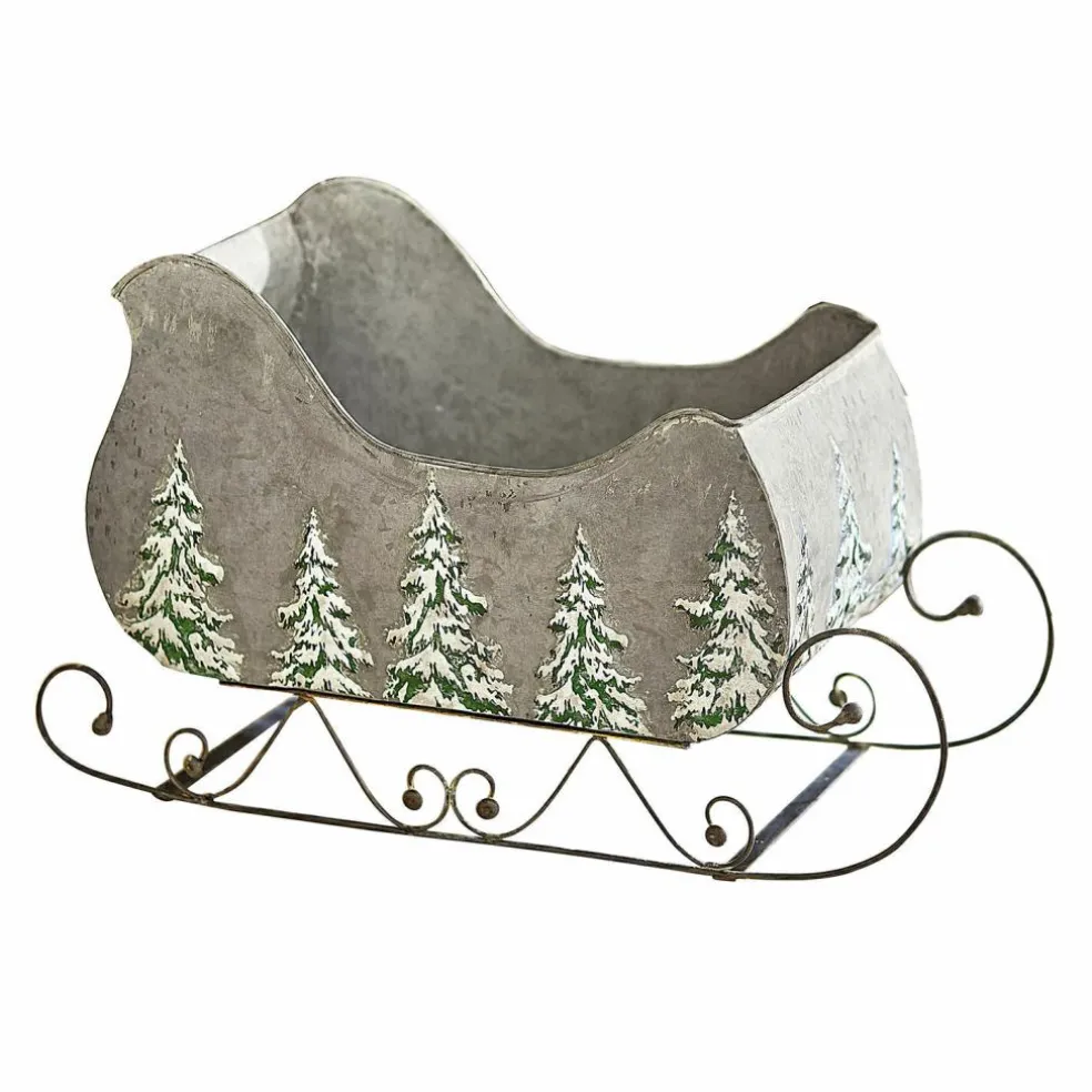 Faites entrer la magie de l’hiver dans votre maison grâce à ce charmant traîneau décoratif en métal robuste. Les motifs de sapin détaillés sur les côtés lui confèrent une touche envoûtante qui rappelle les forêts enneigées. Utilisez ce traîneau polyvalent comme élégant pot à plantes pour offrir une scène particulière à vos fleurs préférées ou comme présentation originale de cadeaux pendant la période de Noël. Même utilisé comme simple objet de décoration, ce petit traineau dégage un charme rustique et un confort hivernal. Le matériau robuste et le modèle raffiné font de ce traineau un élément phare et durable de votre décoration de saison.