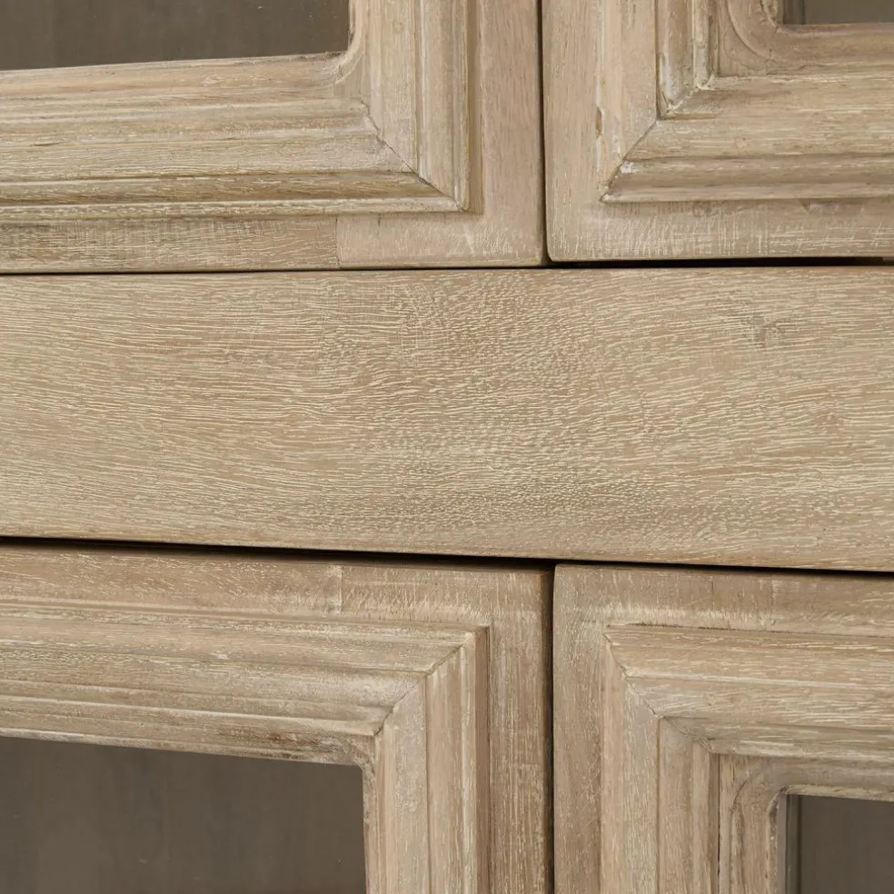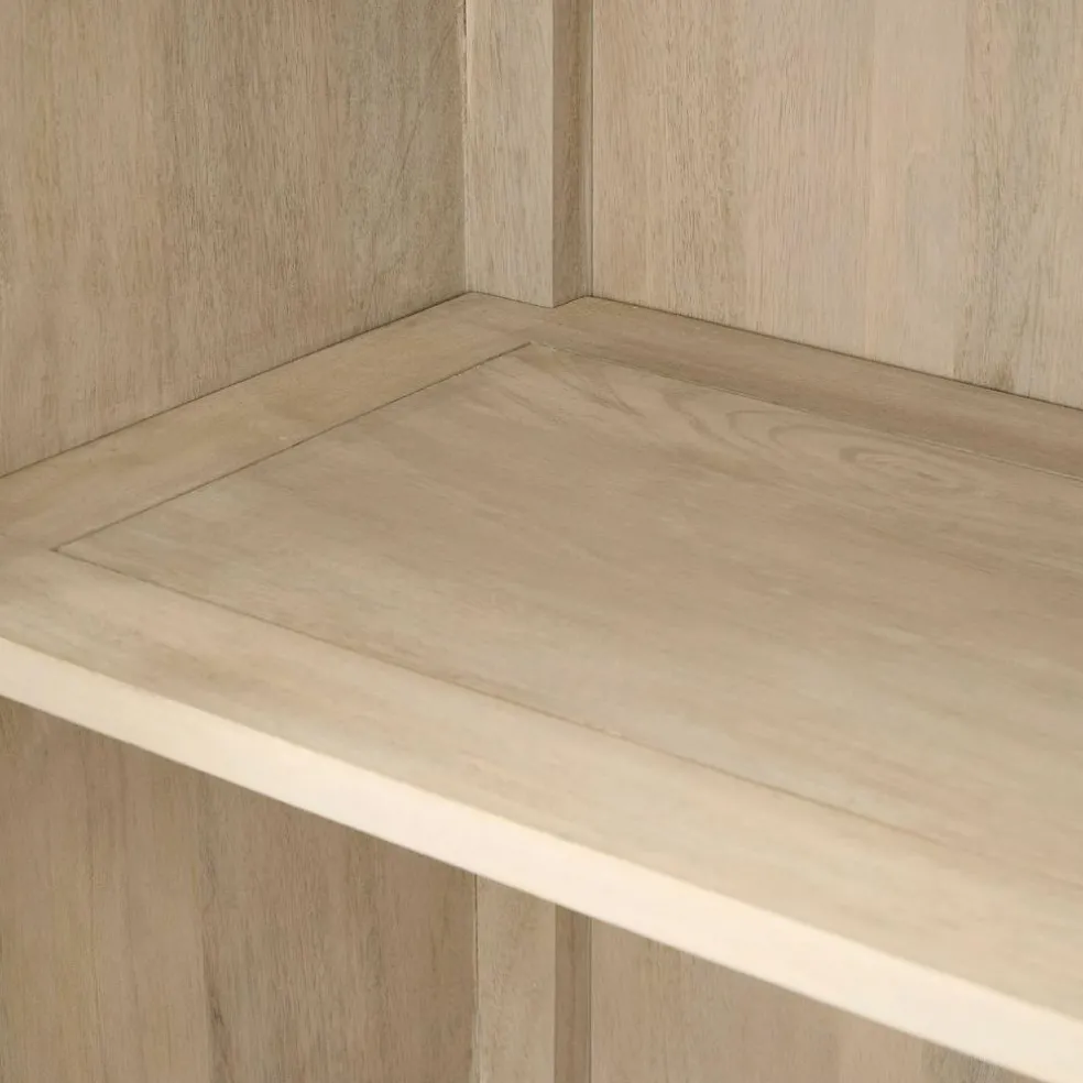 Cette vitrine réunit plusieurs points forts en un seul meuble élégant. La partie supérieure de la porte en verre attire particulièrement l’attention avec ses arcs. Un élément de design actuellement très tendance dans le domaine de l’intérieur, et qui confère à toute pièce une belle douceur. Avec son veinage naturel, le bois de manguier apporte une structure vivante à la surface, tandis que la finition blanchie confère au meuble une douce patine, comme s’il avait déjà beaucoup de belles histoires à raconter. Que ce soit pour la vaisselle, les livres ou vos objets décoratifs préférés, l’aménagement intérieur généreux avec plusieurs étagères rend cette armoire idéale aussi bien pour la salle à manger que pour le salon ou l’entrée. Une pièce qui dégage de la chaleur tout en permettant de ranger avec style.