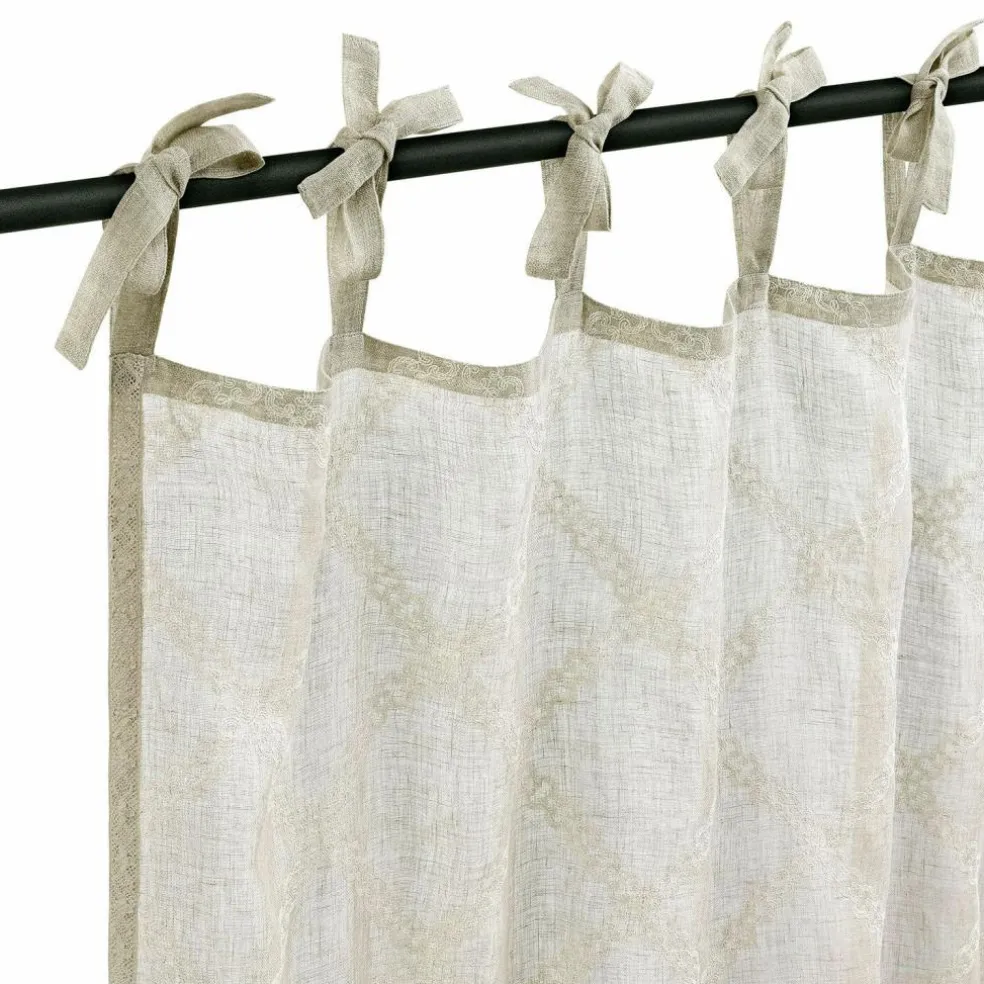 Une touche d’élégance et de nostalgie flotte à travers ce ravissant voilage. Fabriqué en pur lin, il créé une ambiance naturellement chaleureuse et apaisante. Les ornements en dentelle apportent une touche romantique, tandis que des nouettes pratiques vous permettront de l’accrocher facilement. Chaleureux et élégant, ce voilage vous protègera des regards indiscrets tout en créant une ambiance douce et apaisante dans la pièce.